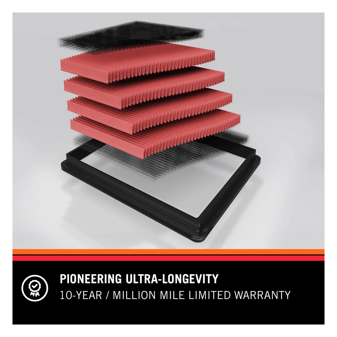 K&N® washable, reusable High-Flow Air Filters™ feature a state-of-the-art design of layered, oiled cotton media engineered to improve airflow and capture contaminants, and are designed to provide an increase in horsepower. Each performance air filter is reusable, engineered to last for the entire lifespan of your vehicle. K&N drop-in replacement filters are designed to install easily into your factory air box. Upgrade today and start enjoying superior airflow and superior performance from K&N's most popular product!
